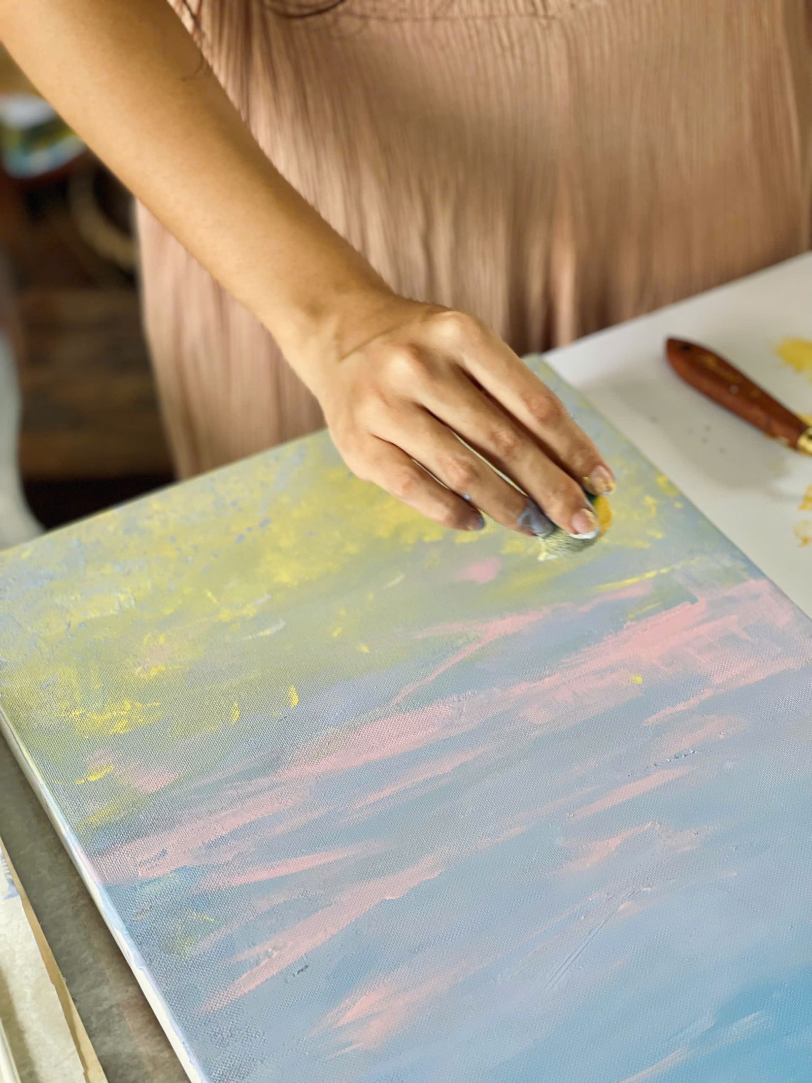 Từ cọ vẽ thông dụng, cọ sơn lớn, khăn giấy hay pay màu, tất cả đều có thể ứng dụng để làm nên những hoạ tiết đặc biệt, tạo thêm hiệu ứng cho tác phẩm riêng